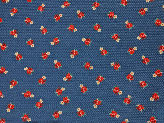 Bullet Knit Fabric – Mini Red Roses & Yellow Bud Ditsy Floral Stretch Print on Vibrant Blue, 56″ Wide, Sold by the Yard (BDPR259)