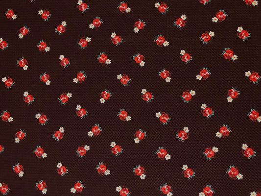 Bullet Knit Fabric – Mini Red Roses & Yellow Bud Ditsy Floral Stretch Print on Chocolate Brown, 56″ Wide, Sold by the Yard (BDPR261)