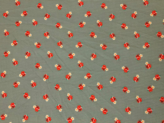Bullet Knit Fabric – Mini Red Roses & Yellow Bud Ditsy Floral Stretch Print on Sage, 56″ Wide, Sold by the Yard (BDPR264)
