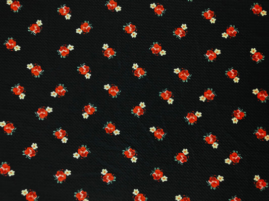 Bullet Knit Fabric – Mini Red Roses & Yellow Bud Ditsy Floral Stretch Print on Black, 56″ Wide, Sold by the Yard (BDPR268)