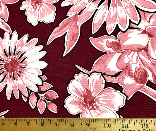 Bullet Knit Fabric - Burgundy Red Sunflowers Print, 56″ Wide, Sold by the Yard (BPR093)