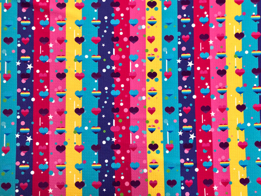 Bullet Knit Fabric – Vibrant Yellow, Purple & Aqua Rainbow Vertical Stripes Print, 56″ Wide, Sold by the Yard (BPR165)