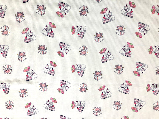 Bullet Knit Fabric - Ivory Mauve Cats Party Print, 56″ Wide, Sold by the Yard (BPR003)