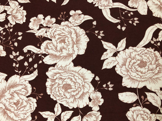 Techno Crepe Knit Fabric – Silky Drape, 4-Way Stretch, Wrinkle-Resistant, 56″ Wide, 240 GSM – Dark Chocolate/Ivory Sketch Floral – Sold by the Yard (TCRP021)