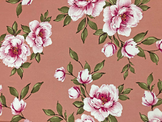 Techno Crepe Knit Fabric – Silky Drape, 4-Way Stretch, Wrinkle-Resistant, 56″ Wide, 240 GSM – Mauve/Pink/Magenta/White Floral with Green Leaves – Sold by the Yard (TCRP017)