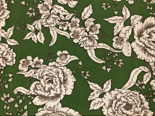 Techno Crepe Knit Fabric – Silky Drape, 4-Way Stretch, Wrinkle-Resistant, 56″, 240 GSM – Olive Green/Ivory Sketch Floral – Sold by the Yard (TCRP087)