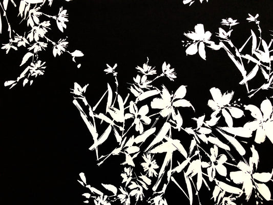 Techno Crepe Knit Fabric – 4-Way Stretch, Silky Drape, Wrinkle-Resistant, 56″ Wide, 240 GSM – Black & White Brushstroke Floral – Sold by the Yard (TCRP013)