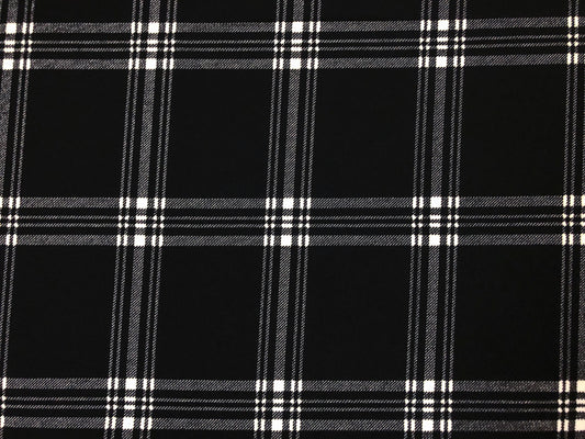 Techno Crepe Knit – Black & White Windowpane Plaid, 4-Way Stretch, 56" Wide, 240 GSM, - By the Yard (TCRP067)