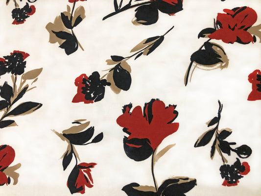 Techno Crepe Knit – Ivory with Brick Red, Black & Taupe Florals, 4-Way Stretch, 56" Wide, 240 GSM - By the Yard (TCRP056)