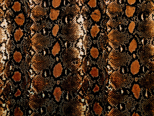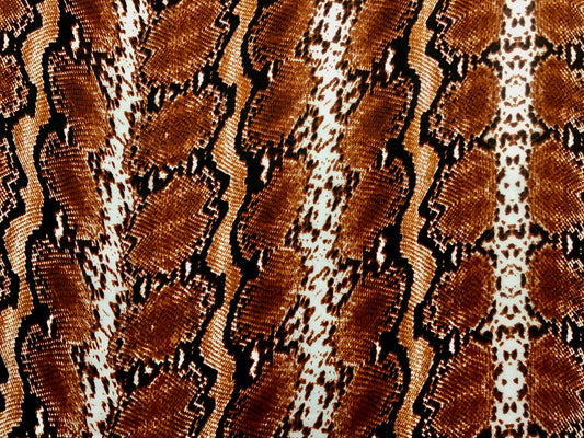 Scuba Techno Knit Fabric — Brown/Copper/Black Phyton Snakeskin Print, Soft-Touch Double Knit, 4-Way Stretch, 56″ Wide, 220 GSM — By the Yard (SCTPR014)