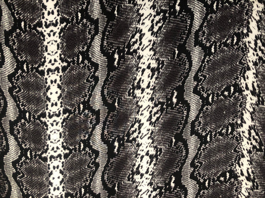 Scuba Techno Knit Fabric — Black/White/Charcoal Python Snakeskin Print, Soft-Touch Double Knit, 4-Way Stretch, 56″ Wide, 220 GSM — By the Yard (SCTPR020)