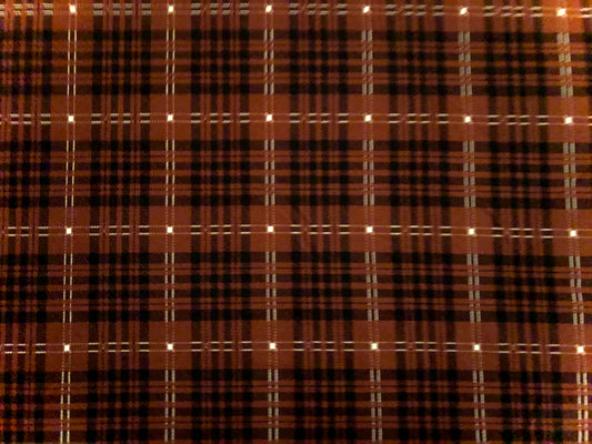 Techno Crepe Knit Fabric – 4-Way Stretch, Silky Drape, Wrinkle-Resistant, 56″ Wide, 240 GSM – Rust/Burgundy/Black Plaid Check with Ivory Accents – Sold by the Yard (TCRP08)