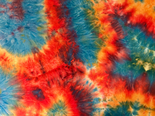 DTY Brushed Fabric-Red Teal Orange Tie Dye-DTYBTD009-Sold by the Yard-Jersey Fabric