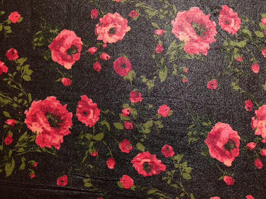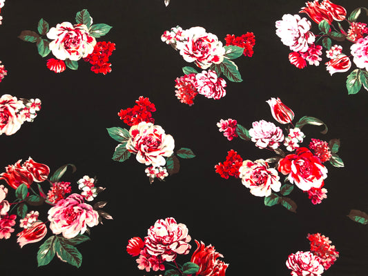 DTY Brushed Fabric-Black Pink Red White Roses-DTYBPR200-Sold by the Yard-Jersey Fabric