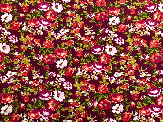 DTY Brushed Fabric-Maroon Lavender White Flowers-DTYBPR218-Sold by the Yard-Jersey Fabric