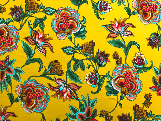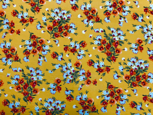 DTY Brushed Fabric-Mustard Blue Orange Red Flowers-DTYBPR244-Sold by the Yard-Jersey Fabric