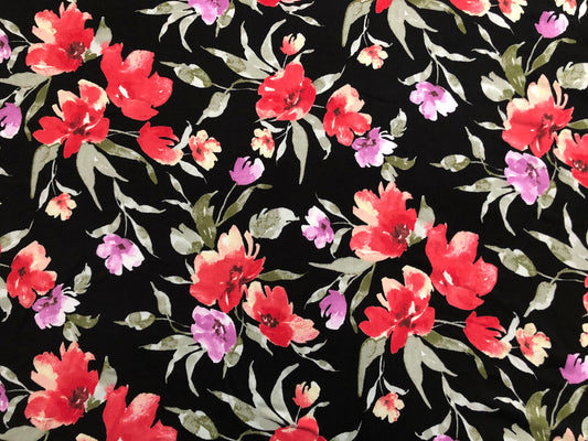 DTY Brushed Fabric-Black Red Lavender Flowers-DTYBPR266-Sold by the yard-Jersey Fabric