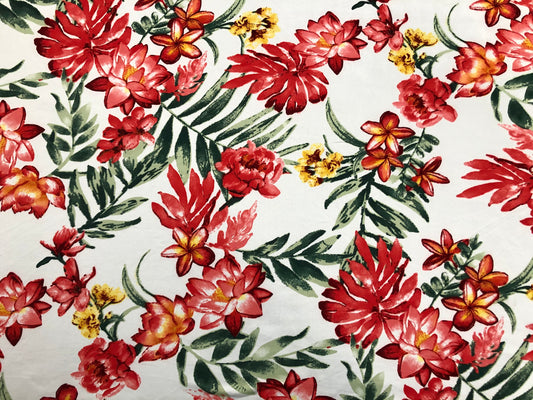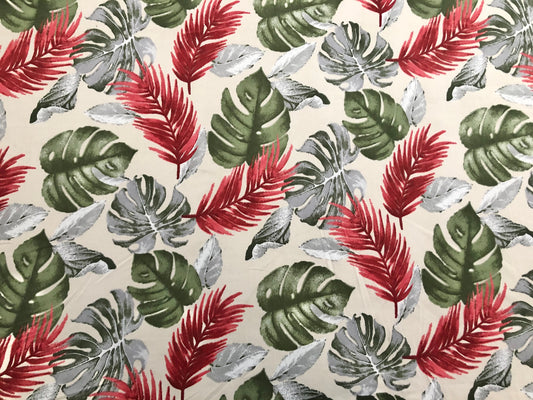 DTY Brushed Fabric-Ivory Red Green Palms-DTYBPR262-Sold by the Yard-Jersey Fabric