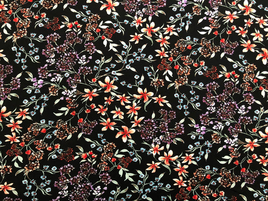 DTY Brushed Fabric-Black Purple Red Blue Flowers-DTYBPR263-Sold by the Yard-Jersey Fabric