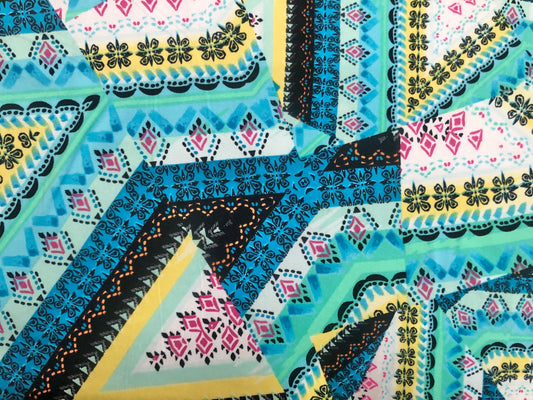DTY Brushed Fabric-Blue Aqua Yellow Mosaics Collage-DTYBPR290-Sold by the Yard-Jersey Fabric