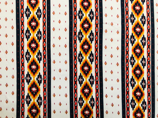 DTY Brushed Fabric-Ivory Red Blue Azteca Stripes-DTYBPR281-Sold by the Yard-Jersey Fabric