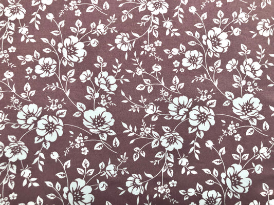 DTY Brushed Fabric-Mauve White Flowers-DTYBPR332-Sold by the Yard-Jersey Fabric