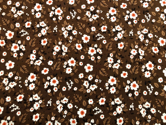 DTY Brushed Fabric-Brown Brick White Flowers-DTYBPR344-Sold by the Yard-Jersey Fabric