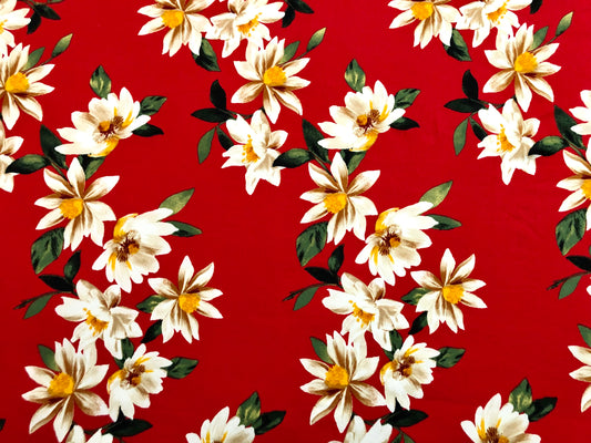 DTY Brushed Fabric-Red White Yellow Taupe Flowers-DTYBPR354-Sold by the Yard-Jersey Fabric