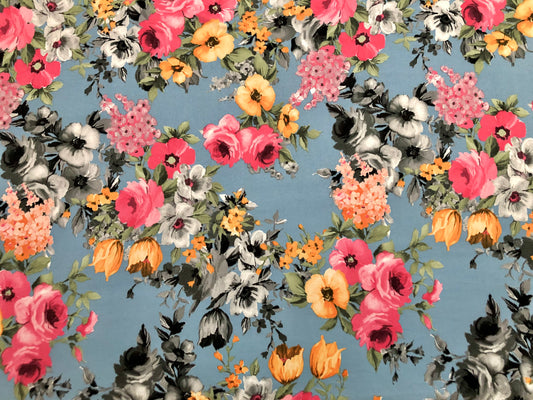 DTY Brushed Fabric-Blue Pink Gray Roses-DTYBPR362-Sold by the Yard-Jersey Fabric