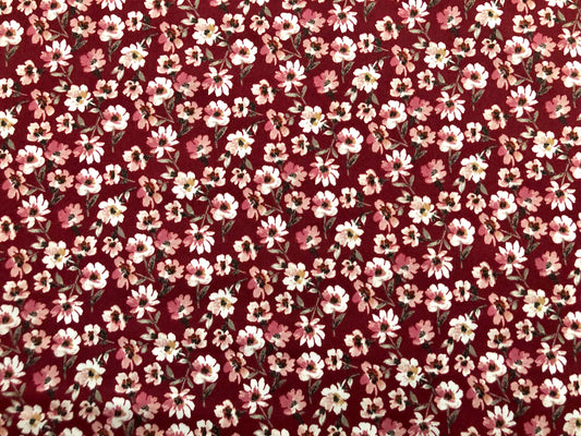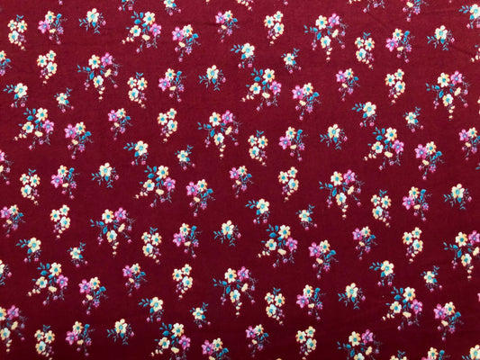DTY Brushed Fabric-Burgundy Yellow Green Flowers-DTYBPR414-Sold by the Yard-Jersey Fabric