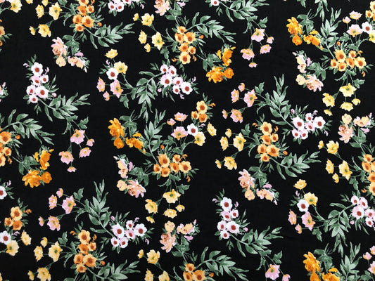 DTY Brushed Fabric-Black Mustard Pink Flowers-DTYBPR472-Sold by the Yard-Jersey Fabric
