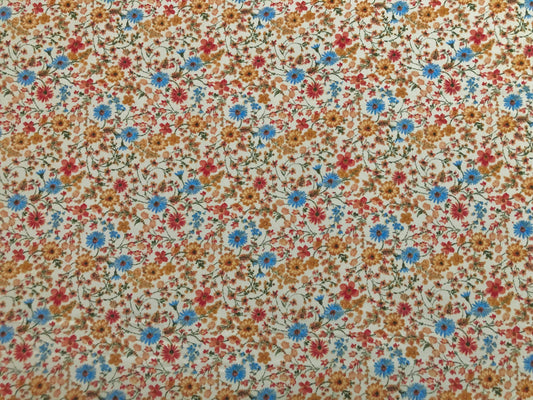 DTY Brushed Fabric-Vanilla Red Brown 3/4" Blue Flowers-DTYBPR492-Sold by the Yard-Jersey Fabric