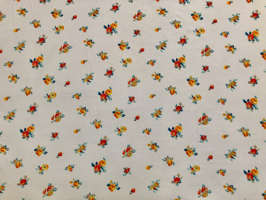 DTY Brushed Fabric-Ivory Gold Red Blue Roses-DTYBPR181-Sold by the Yard-Jersey Fabric