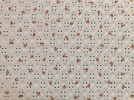 DTY Eyelet Fabric-Ivory Pink Orange 1/2" Flowers-DTYBPR522-Sold by the Yard-Apparel Fabric