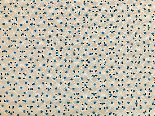 DTY Eyelet Fabric-Ivory Turquoise 1/4" Sunflowers-DTYBPR526-Sold by the Yard-Apparel Fabric
