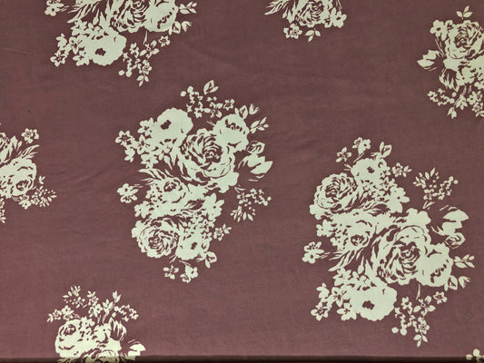 DTY Brushed Fabric-Mauve White Roses-DTYBPR529-Sold by the Yard-Jersey Fabric