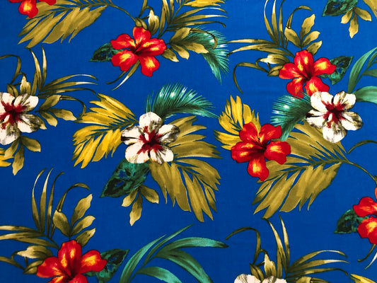 DTY Brushed Fabric-Royal Blue Red White Palms-DTYBPR359-Sold by the Yard-Jersey Fabric
