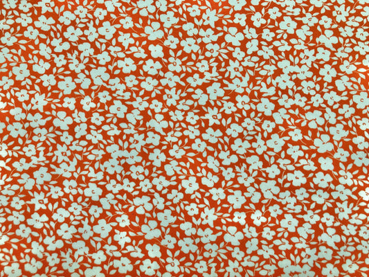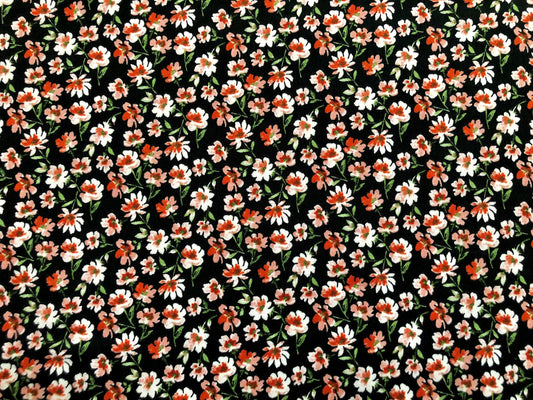 DTY Brushed Fabric-Orange White Flowers and Leaves-DTYBPR407-Sold by the Yard-Jersey Fabric