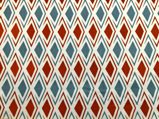 DTY Brushed Fabric-Ivory Denim Blue Rust 1" Diamonds-DTYBPR363-Sold by the Yard-Jersey Fabric