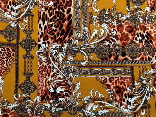 DTY Brushed Fabric-Brown Gold Arabic Mosaics and Leopard-DTYBPR388-Sold by the Yard-Jersey Fabric