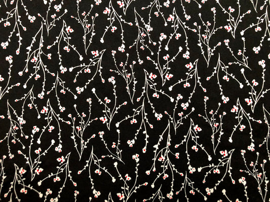 DTY Brushed Fabric-Black White Red Flowers-DTYBPR403-Sold by the Yard-Jersey Fabric
