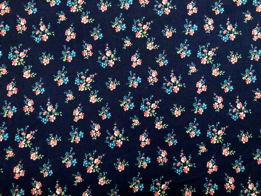 DTY Brushed Fabric-Navy Blue Purple Green Flowers-DTYBPR415-Sold by the Yard-Jersey Fabric