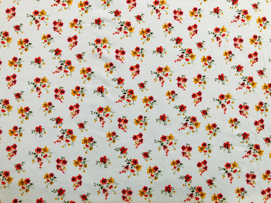 DTY Brushed Fabric-Ivory Red Yellow Flowers-DTYBPR416-Sold by the Yard-Jersey Fabric