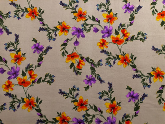 DTY Brushed Fabric-Beige Purple Orange Flowers-DTYBPR444-Sold by the Yard-Jersey Fabric