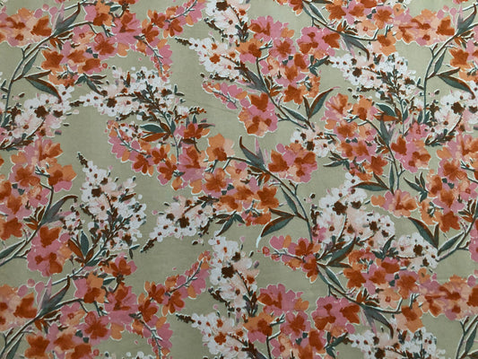 DTY Brushed Fabric-Beige Rust Mauve Flowers-DTYBPR447-Sold by the Yard-Jersey Fabric