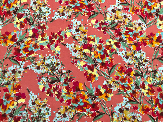 DTY Brushed Fabric-Mauve Red Blue Yellow Flowers-DYTBPR448-Sold by the Yard-Jersey Fabric