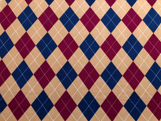 DTY Brushed Fabric-Beige Burgundy Navy Blue Diamonds-DTYBPR427-Sold by the Yard-Jersey Fabric