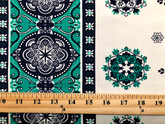 DTY Non Brushed Fabric-Ivory Green Navy Blue Bandana-DTYNBPR488-Sold by the Yard-Spandex Fabric