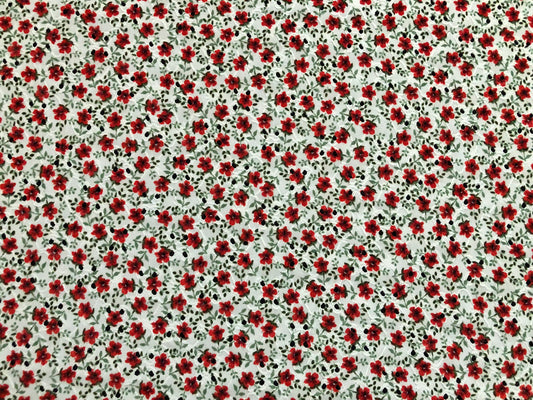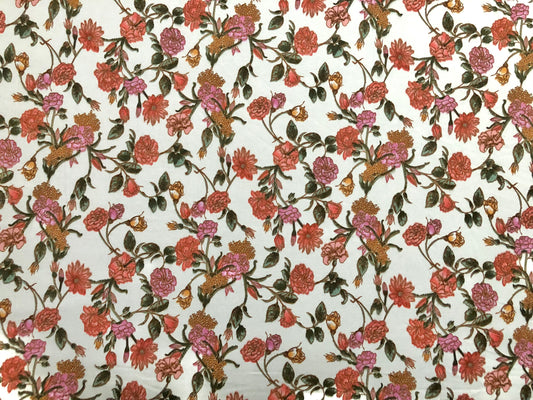 DTY Brushed Fabric-Ivory Red Pink Flowers-DTYBPR470-Sold by the Yard-Jersey Fabric