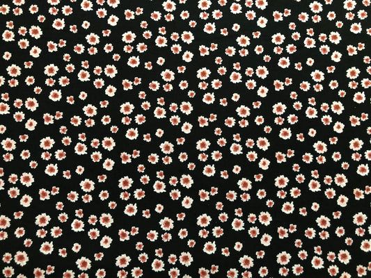 DTY Brushed Fabric-Black Pink Maroon Ivory Flowers-DTYBPR487-Sold by the Yard-Jersey Fabric